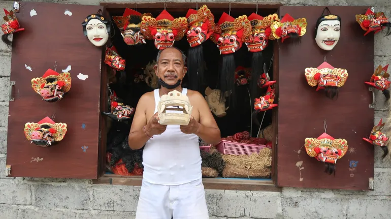 In the village of Batuan, craftsman Wayan Madru carves and paints traditional masks. He studied this craft when he was still in primary school.