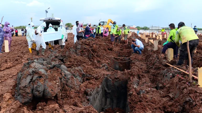 “Before COVID, I used to dig 10 graves each day. But yesterday, we dug 46 graves. The day before, it was 51,” Darsiman, a gravedigger of 20 years, said.